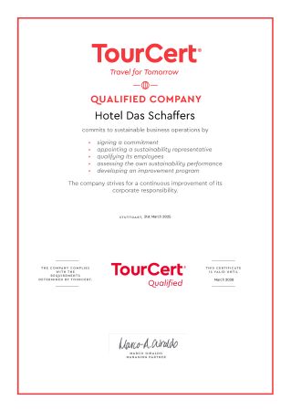 Environmentally friendly, sustainable tourism is a trend which is increasingly determining our guests’ choice of holiday destination. We have committed ourselves to monitoring the relevant data in the ecological, economic and sociocultural fields and pursuing a policy of continuous improvement. This reflects a philosophy which guests at the hotel DasSchaffers can always sense, experience and even taste.