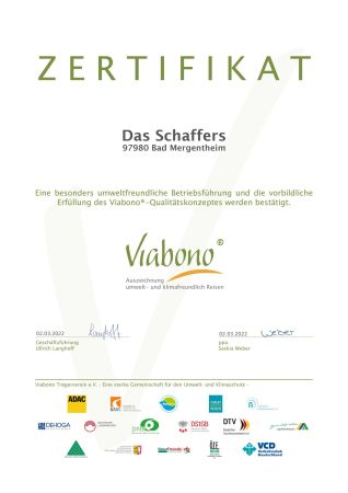 The concepts that underpin Viabono establish an intelligent balance between reliability, expertise and credibility, on the one hand, and practice-oriented pragmatism, on the other. The guiding principle is: “Ecology and the economy go very well together and often complement one another outstandingly well. This is why Viabono has earned widespread acceptance not only in the tourist industry but also among the environmental associations. You can find the certificate here.
