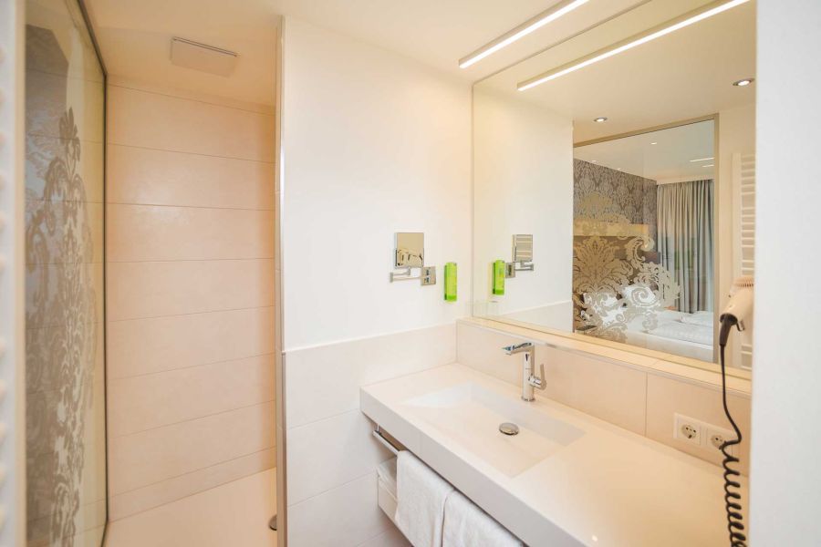Our modern, comfortably equipped double rooms in the new building provide an optimum feeling of well-being in an incomparable atmosphere. In our new building, the shower and WC are located separately within the room. There are no additional costs for use of the sauna, Internet access and our top-quality breakfast.